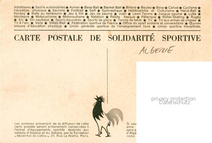 73854757 Algerie Algerien Pour Les Colis Sportifs des Soldats d’Algerie et de Sahara postalisch nicht gelaufen Erhaltung siehe scans [WerneD78] KatCode: 18030