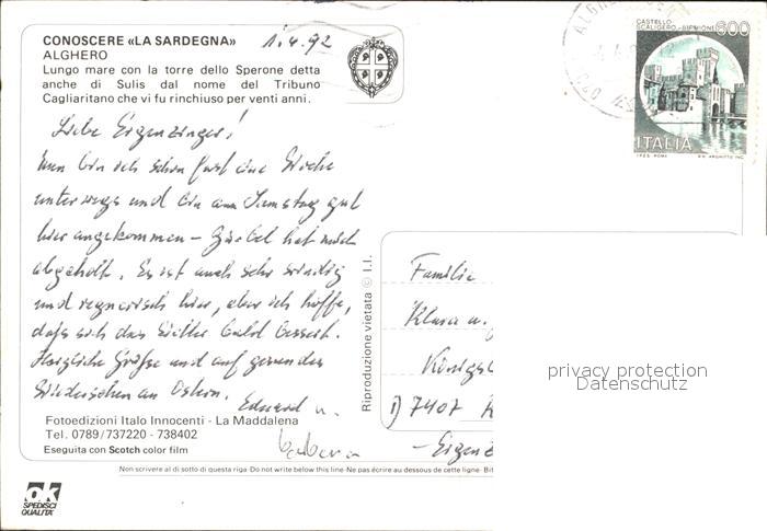 old postcard Alghero La Sardegna postalisch gelaufen Erhaltung siehe scans