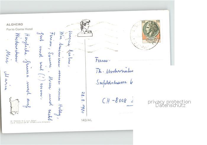 old postcard Alghero Porto Conte Hotel Fliegeraufnahme postalisch gelaufen Erhaltung siehe scans