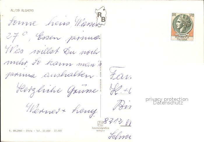 Alghero Steinkueste postalisch nicht gelaufen Erhaltung siehe scans