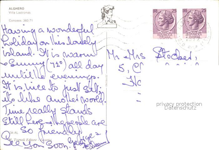 old postcard Alghero Villa Lastronas postalisch gelaufen Erhaltung siehe scans
