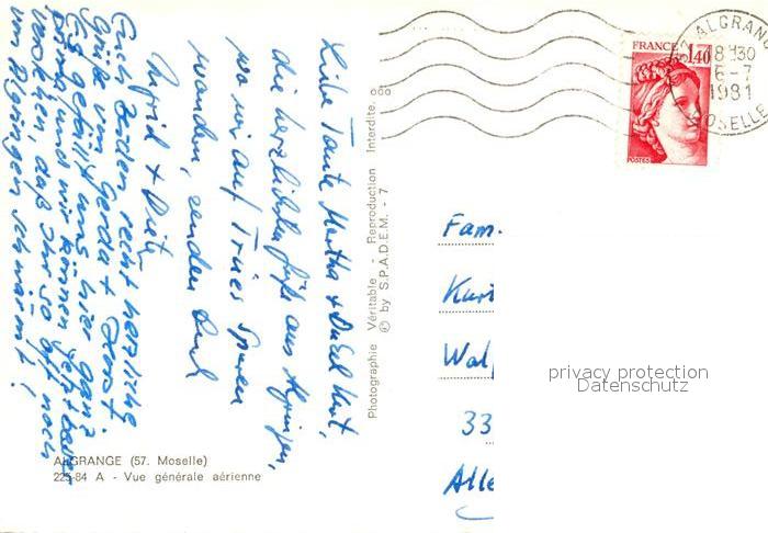 13217447 carte postale Algrange Vue Aerienne Fliegeraufnahme postalisch gelaufen Erhaltung siehe scans [PaolaD17] KatCode: 11170057857012