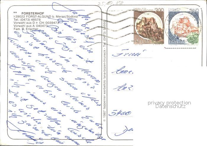 old postcard Algund Merano Forsterhof postalisch gelaufen Erhaltung siehe scans