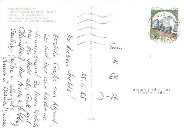 old postcard Algund Merano Haus Sonnenbrunn postalisch gelaufen Erhaltung siehe scans