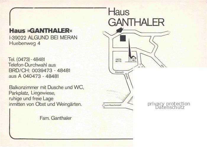 74109607 Algund Merano Suedtirol IT Haus Ganthaler postalisch nicht gelaufen Erhaltung siehe scans [WerneD78] KatCode: 11240