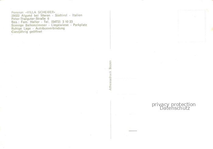 74023222 Algund Merano Suedtirol IT Pension Villa Scheiber Baumbluete postalisch nicht gelaufen Erhaltung siehe scans [FriedD77] KatCode: 11240