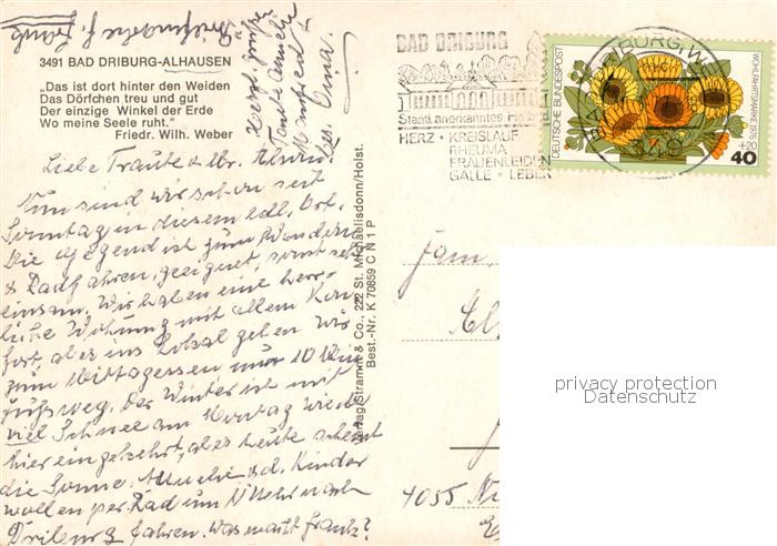 73754863 alte Postkarte Alhausen Westfalen Weberhaus Marienplatz Friedrich Wilhelm Weber Portrait Panorama postalisch gelaufen Erhaltung siehe scans [WerneD78] KatCode: 11110005762004