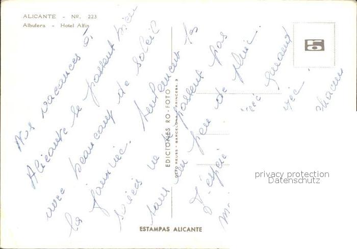 Alicante Albufera Hotel Alfin Motorboot postalisch nicht gelaufen Erhaltung siehe scans