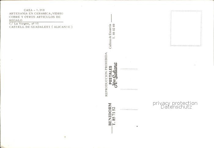 Alicante Casa 1918 Artesania Ceramica Vidrio postalisch nicht gelaufen Erhaltung siehe scans