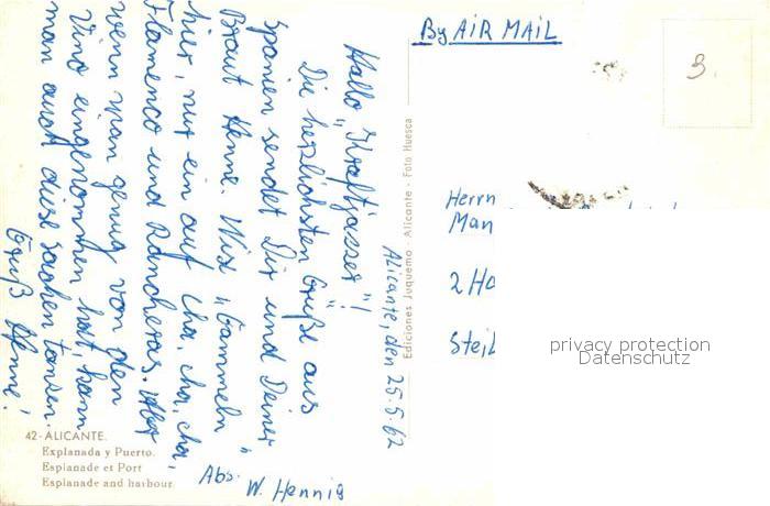 old postcard Alicante Explanada y Puerto postalisch gelaufen Erhaltung siehe scans [LiesaD40]