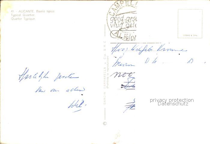 old postcard Alicante Gasse mit Treppen postalisch gelaufen Erhaltung siehe scans