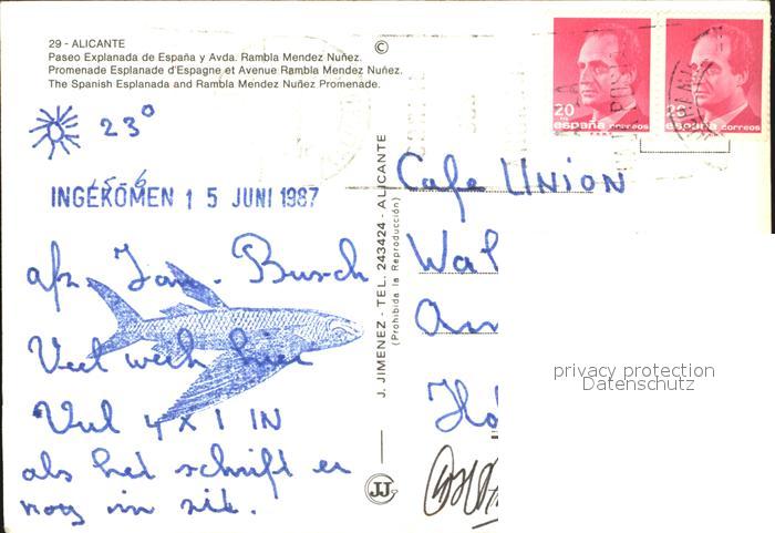 old postcard Alicante Paseo Explanada de Espana y Avenida Rambla Mendez Nunez postalisch gelaufen Erhaltung siehe scans