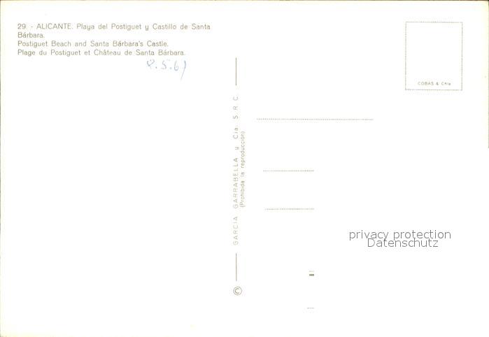 Alicante Playa del Postiguet y Castillo de Santa Barbara postalisch nicht gelaufen Erhaltung siehe scans