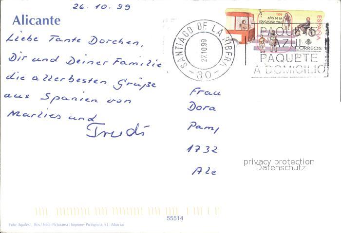 old postcard Alicante Promenade postalisch gelaufen Erhaltung siehe scans