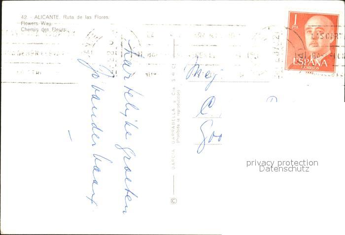 old postcard Alicante Ruta de las Flores postalisch gelaufen Erhaltung siehe scans