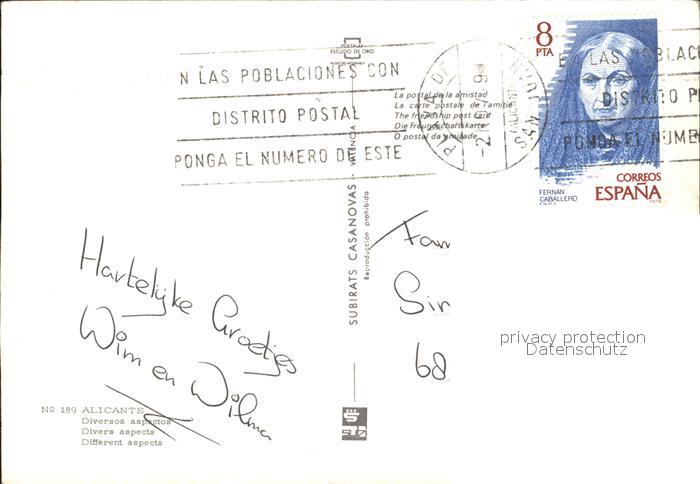 old postcard Alicante Strand Promenade Paella Hafen postalisch gelaufen Erhaltung siehe scans