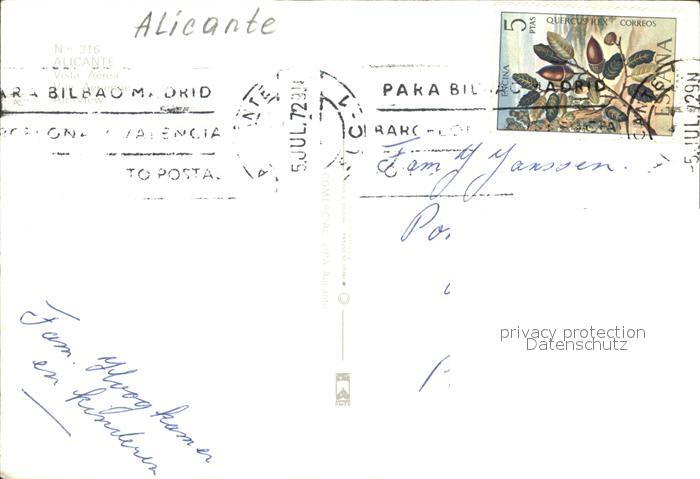 old postcard Alicante Uferstrasse Promenade postalisch gelaufen Erhaltung siehe scans [WerneD78]