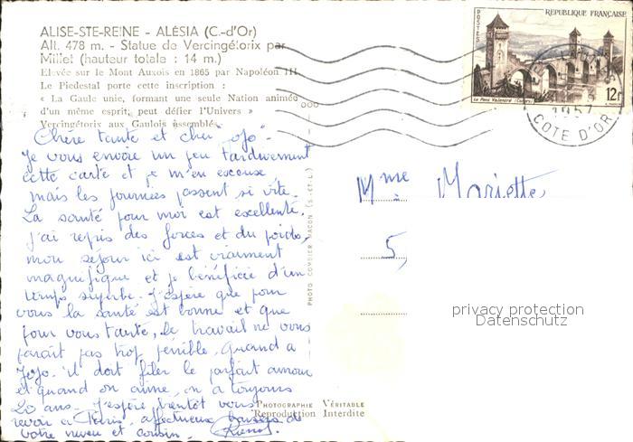 11968552 carte postale Alise-Sainte-Reine Alesia Statue de Vercinglorix postalisch gelaufen KatCode: 11170021321008