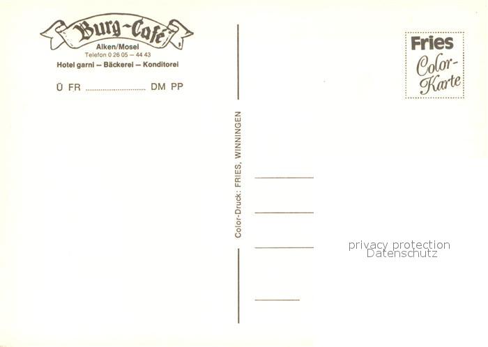 72960828 Alken Koblenz Burg-Cafe postalisch nicht gelaufen Erhaltung siehe scans [LiesaD40] KatCode: 11110007137201