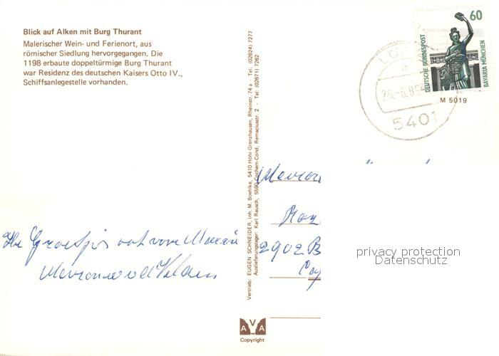 73311390 alte Postkarte Alken Koblenz Burg Thurant postalisch gelaufen Erhaltung siehe scans [KathaD81] KatCode: 11110007137201