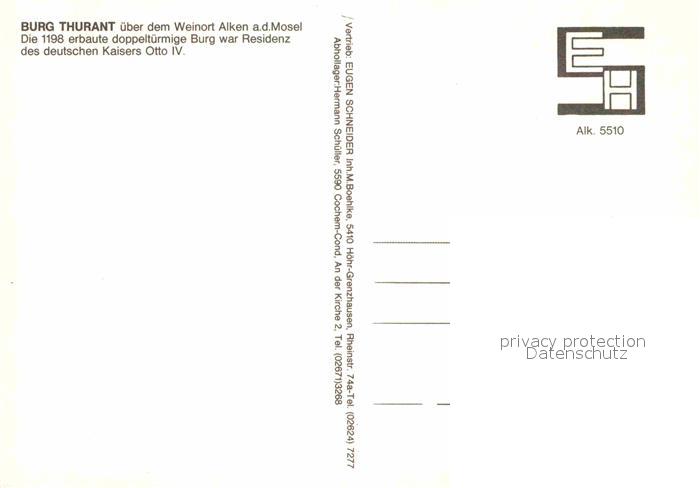 72767561 Alken Koblenz Burg Thurant postalisch nicht gelaufen Erhaltung siehe scans [LiesaD40] KatCode: 11110007137201