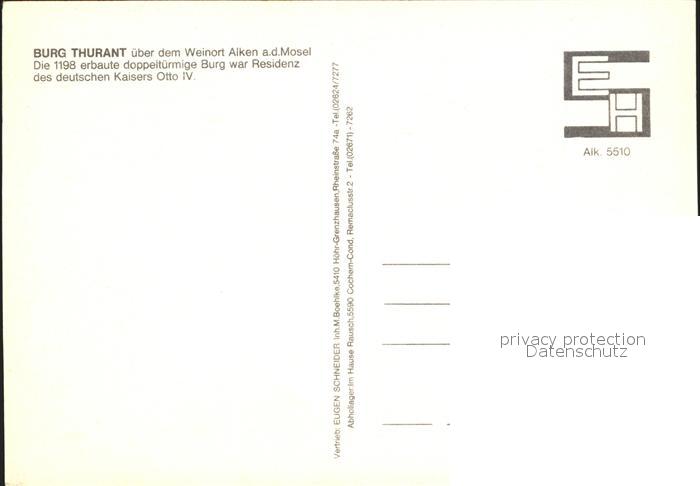 72304999 Alken Koblenz Burg Thurant postalisch nicht gelaufen Erhaltung siehe scans KatCode: 11110007137201