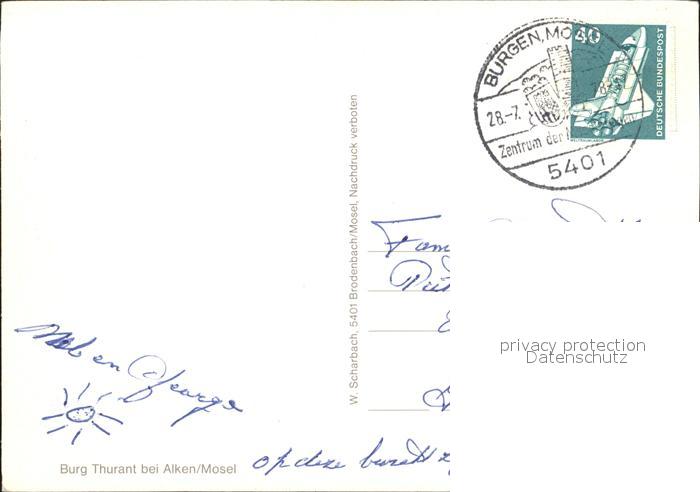 72274920 alte Postkarte Alken Koblenz Burg Thurant postalisch gelaufen Erhaltung siehe scans KatCode: 11110007137201