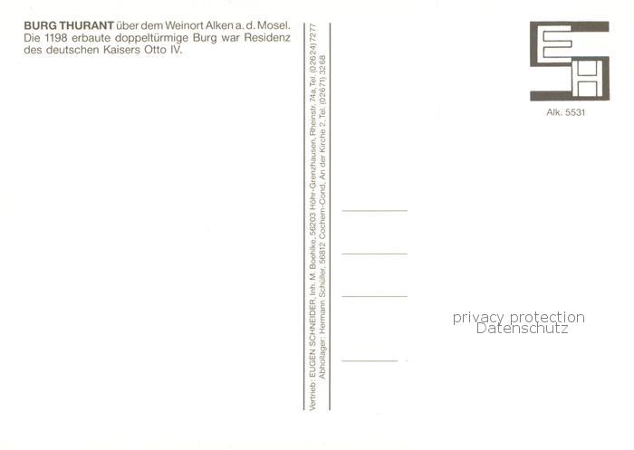 73781306 Alken Koblenz Burg Thurant Jagdzimmer Burg Kapelle Weinkeller postalisch nicht gelaufen Erhaltung siehe scans [FriedD77] KatCode: 11110007137201