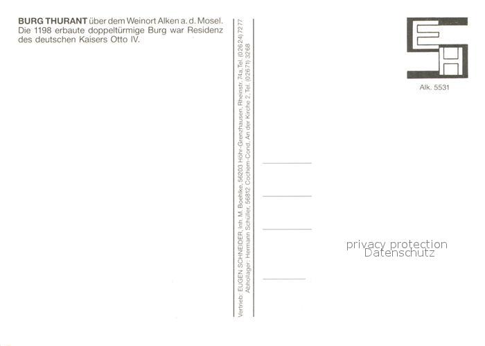 72987675 Alken Koblenz Burg Thurant Kapelle Jagdzimmer Weinkeller postalisch nicht gelaufen Erhaltung siehe scans [LiesaD40] KatCode: 11110007137201