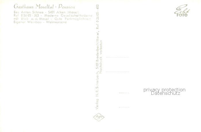 73800892 Alken Koblenz Gasthaus Moseltal Gastraeume Fliegeraufnahme postalisch nicht gelaufen Erhaltung siehe scans [WerneD78] KatCode: 11110007137201