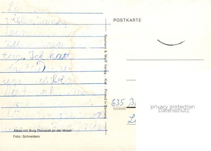 73244626 alte Postkarte Alken Koblenz mit Burg Thurant an der Mosel postalisch gelaufen Erhaltung siehe scans [LiesaD40] KatCode: 11110007137201