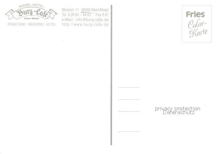 73541318 Alken Koblenz Mosel Hotel Burg Cafe postalisch nicht gelaufen Erhaltung siehe scans [KathaD81] KatCode: 11110007137201