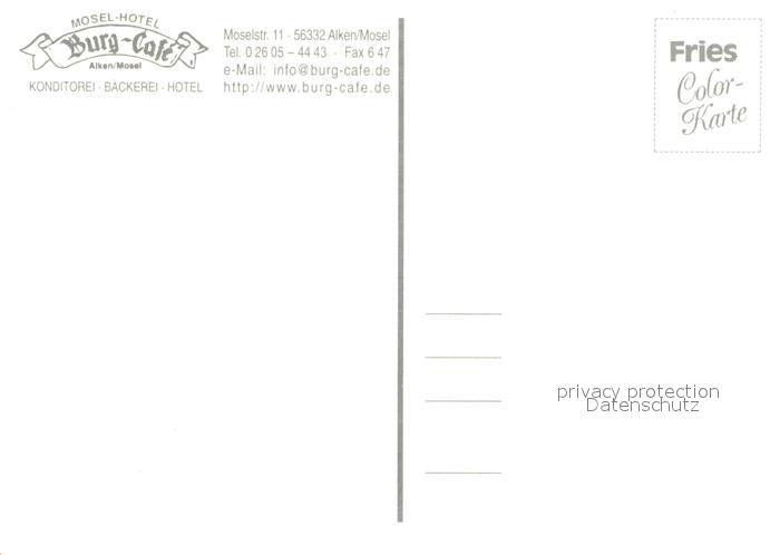 73615134 Alken Koblenz Mosel Hotel Burg Cafe postalisch nicht gelaufen Erhaltung siehe scans [WerneD78] KatCode: 11110007137201