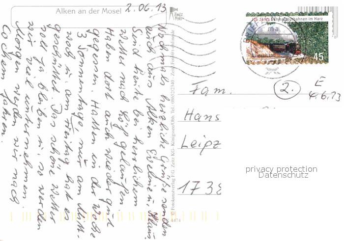 72682461 alte Postkarte Alken Koblenz Motorboot Blick ueber die Mosel Burgruine postalisch gelaufen Erhaltung siehe scans [FriedD77] KatCode: 11110007137201