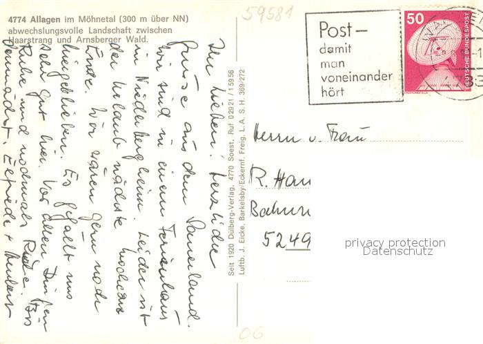 73663700 alte Postkarte Allagen Fliegeraufnahme im M?hnetal postalisch gelaufen Erhaltung siehe scans [LiesaD40] KatCode: 11110005974044