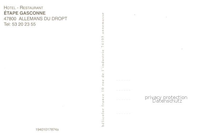13606367 Allemans-du-Dropt Fliegeraufnahme Hotel Restaurant Etape Gasconne postalisch nicht gelaufen Erhaltung siehe scans [LiesaD40] KatCode: 11170047247005