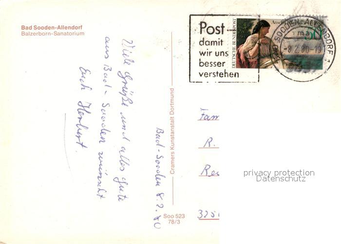 73118976 alte Postkarte Allendorf Bad Sooden Balzerborn Sanatorium postalisch gelaufen Erhaltung siehe scans [LiesaD40] KatCode: 11110006436001
