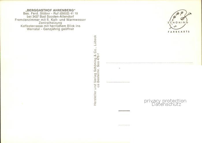 72454984 Allendorf Bad Sooden Berggasthof Ahrenberg Restaurant Terrasse postalisch nicht gelaufen Erhaltung siehe scans KatCode: 11110006436001