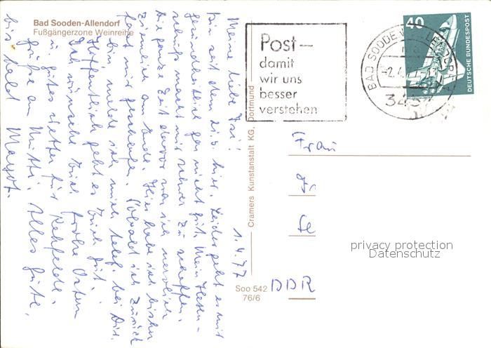 72225905 alte Postkarte Allendorf Bad Sooden Fussgaengerzone Weinreihe postalisch gelaufen Erhaltung siehe scans KatCode: 11110006436001