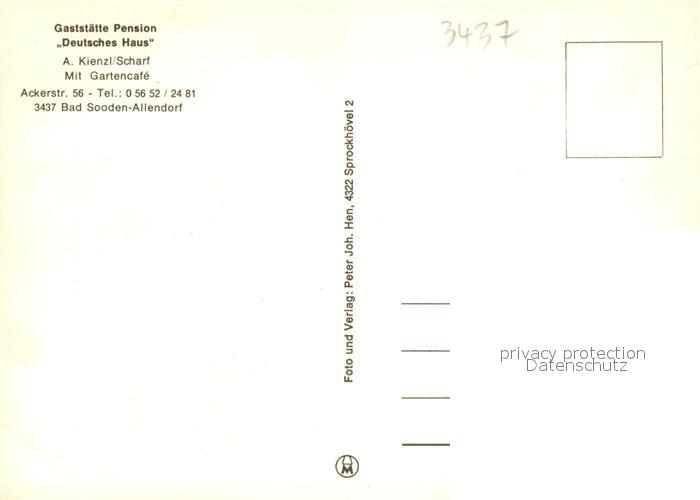 73652868 Allendorf Bad Sooden Gaststaette Pension Deutsches Haus Restaurant Gartenterrasse postalisch nicht gelaufen Erhaltung siehe scans [FriedD77] KatCode: 11110006436001
