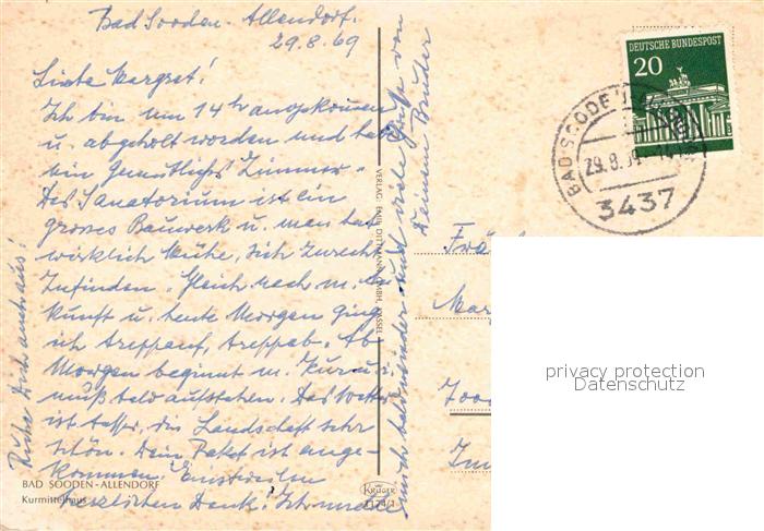 72715481 alte Postkarte Allendorf Bad Sooden Kurmittelhaus postalisch gelaufen Erhaltung siehe scans [LiesaD40] KatCode: 11110006436001
