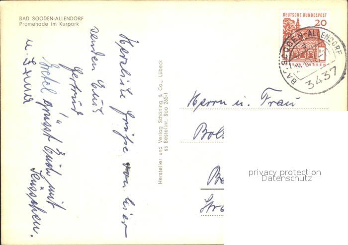 72225906 alte Postkarte Allendorf Bad Sooden Promenade im Kurpark postalisch gelaufen Erhaltung siehe scans KatCode: 11110006436001