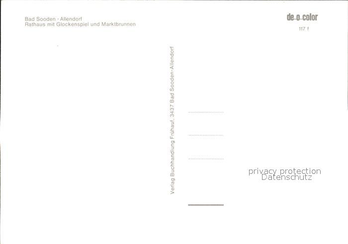 72367124 Allendorf Bad Sooden Rathaus Glockenspiel Marktbrunnen Fachwerkhaus postalisch nicht gelaufen Erhaltung siehe scans KatCode: 11110006436001