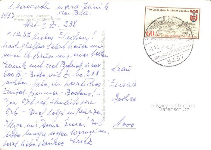 72225907 alte Postkarte Allendorf Bad Sooden Rhenanuspltz mit Marienkirche Fachwerkhaeuser postalisch gelaufen Erhaltung siehe scans KatCode: 11110006436001