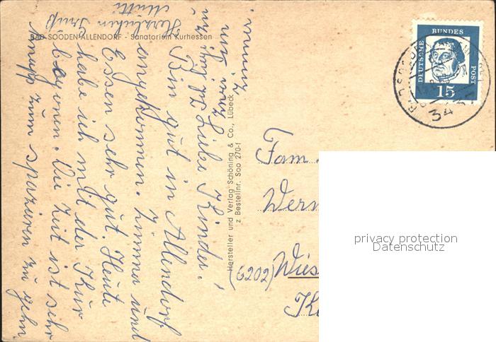 72000881 alte Postkarte Allendorf Bad Sooden Sanatorium Kurhessen postalisch gelaufen Erhaltung siehe scans KatCode: 11110006436001