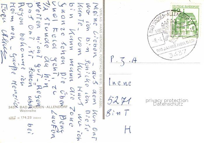 72869679 alte Postkarte Allendorf Bad Sooden Weinreihe Brunnen Fachwerk postalisch gelaufen Erhaltung siehe scans [LiesaD40] KatCode: 11110006436001