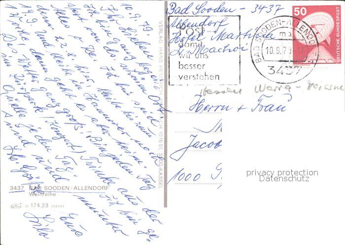 72225901 alte Postkarte Allendorf Bad Sooden Weinreihe Brunnen Fussgaengerzone postalisch gelaufen Erhaltung siehe scans KatCode: 11110006436001