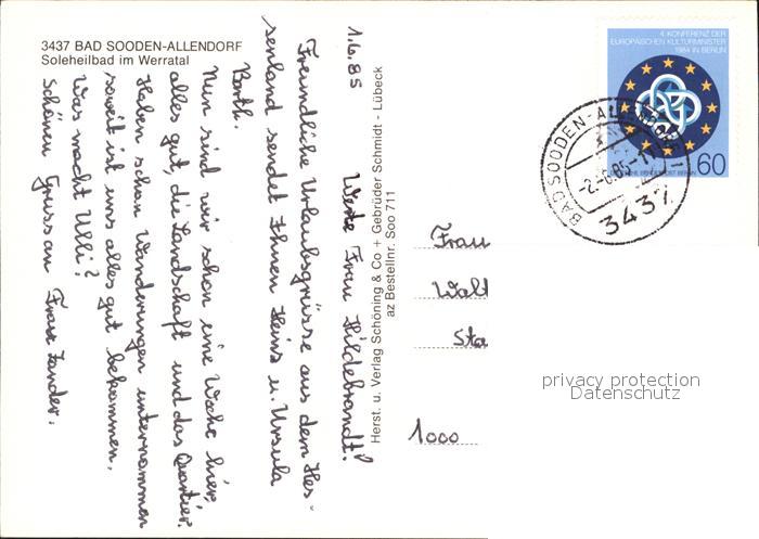 72600424 alte Postkarte Allendorf Bad Sooden Weinreihe Lange Reihe Kirchstrasse Am Tor Fachwerkhaeuser Soleheilbad im Werratal postalisch gelaufen Erhaltung siehe scans [FriedD77] KatCode: 11110006436001
