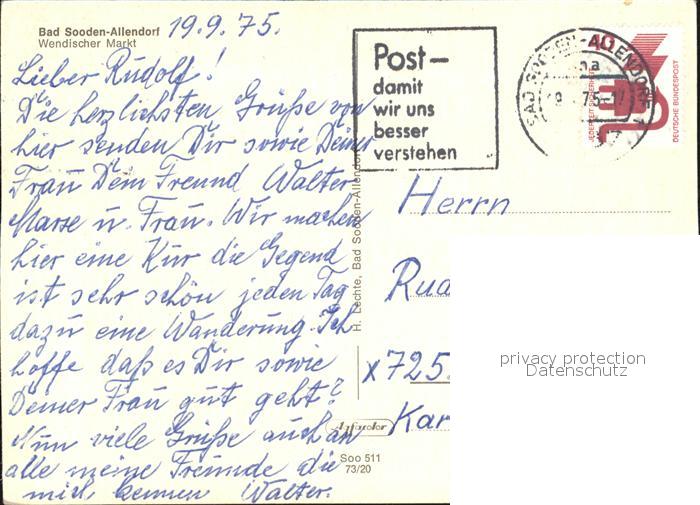 72573994 alte Postkarte Allendorf Bad Sooden Wendischer Markt postalisch gelaufen Erhaltung siehe scans [LiesaD40] KatCode: 11110006436001