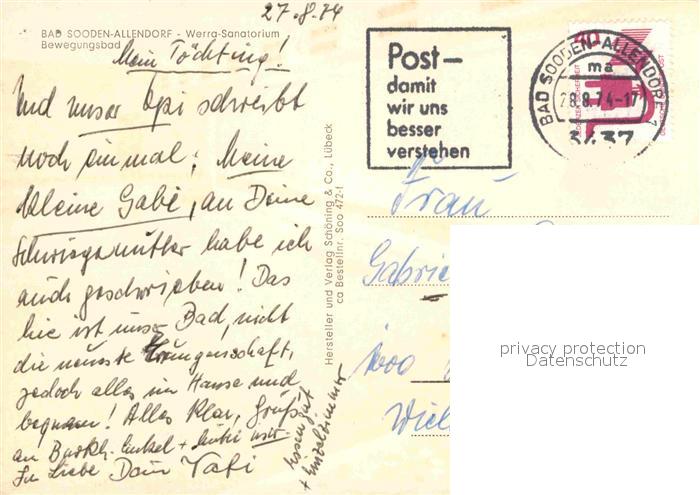 72655130 alte Postkarte Allendorf Bad Sooden Werra-Sanatorium Bewegungsbad postalisch gelaufen Erhaltung siehe scans [LiesaD40] KatCode: 11110006436001